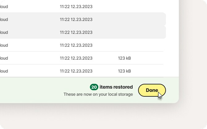 Laptop verloren? Von Ransomware befallen? Kein Grund zur Sorge: Melden Sie sich einfach von einem beliebigen Gerät aus an, um Ihre Dateien mit wenigen Klicks wiederherzustellen.